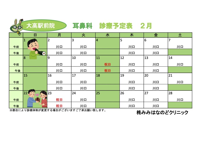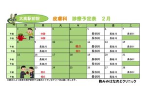 2月の診療予定表です。